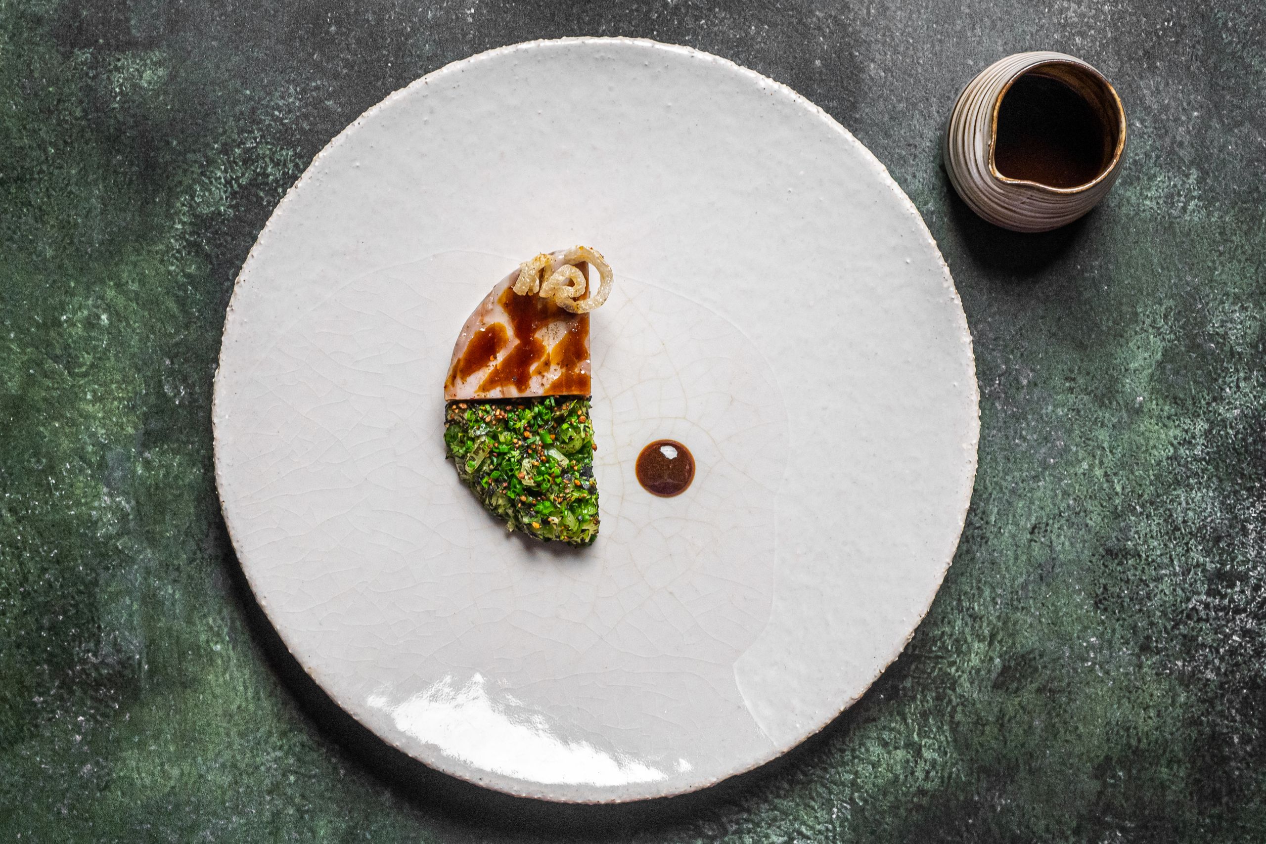 Ein hervorragender Tisch, an dem die Tradition Hand in Hand mit der Kreativität des Küchenchefs Glenn Viel für eine Küche geht, die direkt zum Wesen der Dinge geht und das Beste aus dem einzigartigen Geschmack jedes Stücks lokaler Produkte herausholt.