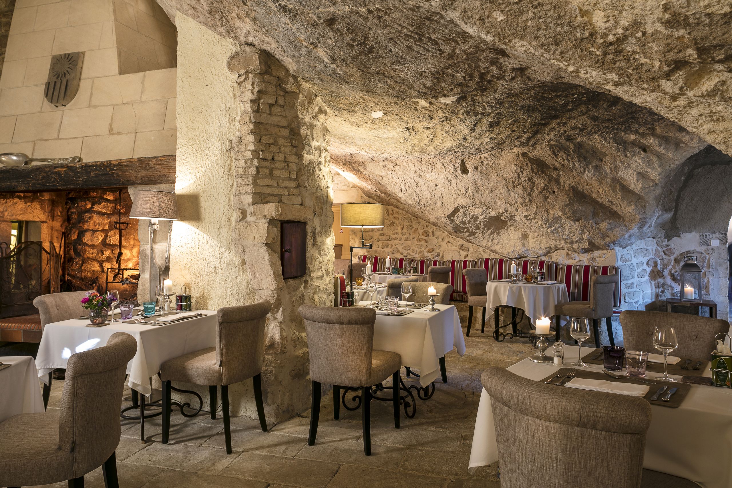 Restaurant troglodytique avec cheminée et une belle terrasse panoramique pour les beaux jours.