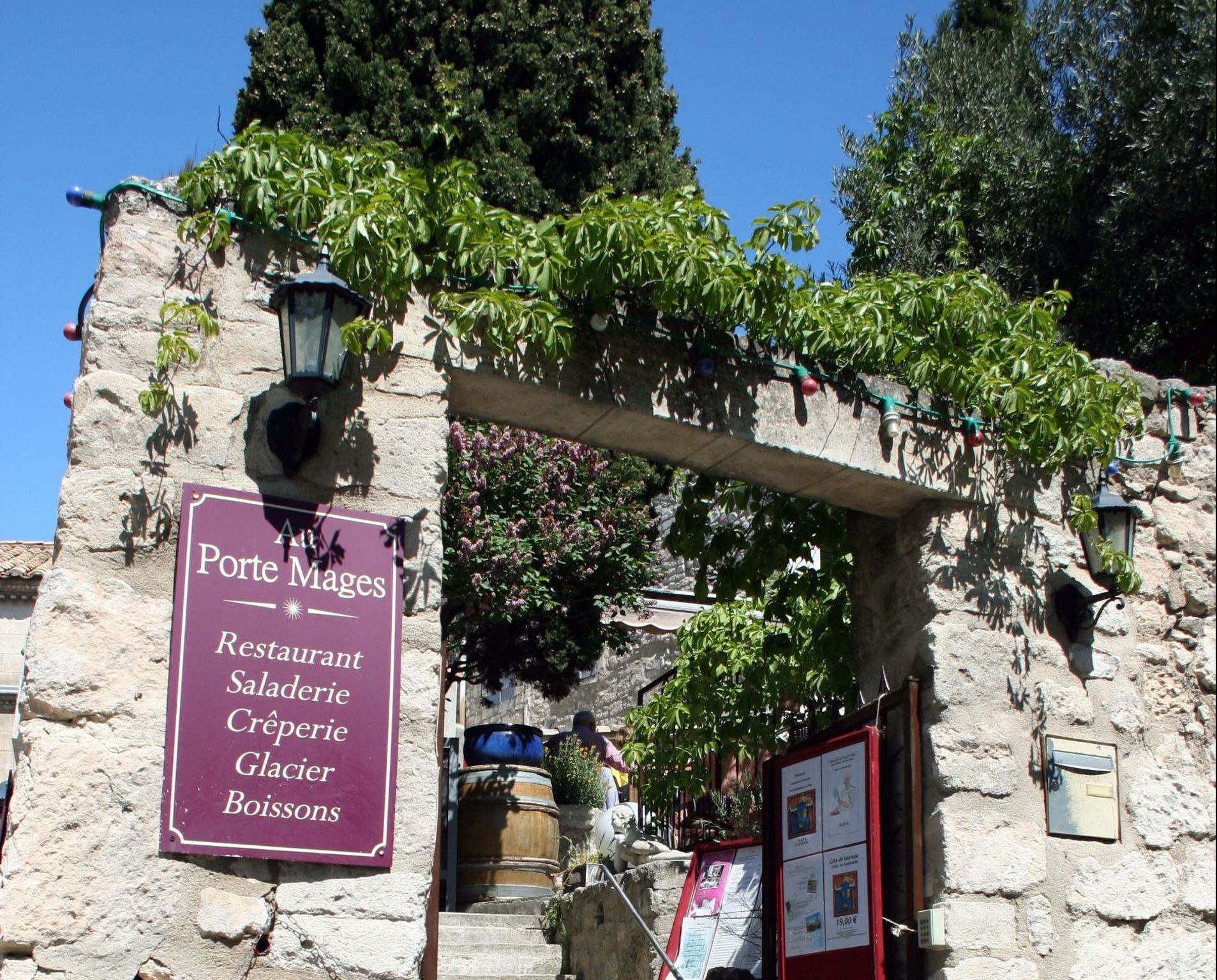 Le restaurant Au Porte Mages est situé à l’entrée du village piéton.